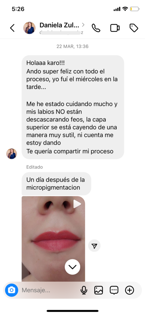 Según la pigmentación labial de cada cliente es posible un retoque entre los 45 y 60 días